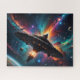Un pequeño oficio acaba de desembarcar de la nave nodriza o de la estación espacial, sus motores se disparan mientras se acelera en esta dinámica imagen de ciencia ficción. Galaxias, estrellas y planetas coloridos son visibles en el fondo, y la superficie de un planeta gigante se puede ver en la esquina inferior izquierda. Ideal para los amantes de Robert Heinlein, Isaac Asimov y Frank Herbert.
