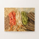 Un rompecabezas con la imagen fotográfica de diferentes tipos de pasta llenando el marco. Con la bandera italiana del rojo, amarillo y verde. Este rompecabezas es totalmente personalizable. Puede agregar un mensaje o cualquier texto o puede cambiar el tamaño y la cantidad de piezas del rompecabezas para establecer el nivel de dificultad como prefiera.