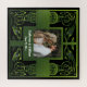 Un impresionante diseño irlandés verde y negro presenta nudos y halcones celtas.
