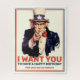 Añade tu mensaje, diversión de cumpleaños, poster del tío Sam "I Want You", basado en el poster de J. M. Flagg de 1917, que se basó en un poster británico original de Lord Kitchener de tres años antes. Se usó para reclutar soldados tanto para la Primera Guerra Mundial como para la Segunda Guerra Mundial. Flagg usó una versión modificada de su propia cara para el Tío Sam. ... Haga clic en el botón "Personalizar" o "Editar Diseño" para añadir su propio texto, color, tipo de letra o tamaño y crear su propio regalo original especial (o un regalo especial para usted mismo). ¿Qué tal el nombre de alguien, un cumpleaños o Navidades saludando, un lugar y una fecha?... O, si quieres, no agregues ningún texto y ten la imagen por sí sola. ¡NO OLVIDES ELEGIR EL NÚMERO CORRECTO DE PIEZAS DE JIGSAW! Ajuste su foto y texto según sea necesario. Piece & Quiet© - Todos los derechos reservados.