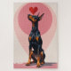 This bold, minimalist vector illustration showcases the precision and elegance of the Doberman, captured in a striking pose balancing a perfect crimson heart on its nose. A sleek, modern design for Doberman lovers this Valentine's Day.