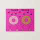 ¡Bailemos como las fresas y los donuts de chocolate! Están bailando y disfrutando de la vida. Gracioso y dulce, estos donuts pueden traer una sonrisa a la cara del que recibe este rompecabezas. ¡Personalizable. Trabajo original; c) Sharon Lee Hudson. Todos Los Derechos Reservados.
