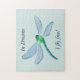 Una acuarela de una hermosa libélula azul y verde adorna este rompecabezas. Personalizar añadiendo o cambiando el texto y el color de fondo para que se adapte a sí mismo.