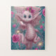 Este bonito diseño presenta un lindo dragón de bebé rosado con flores rosas.