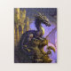 Puzzle Dragón de oro púrpura en las escaleras del castill
