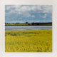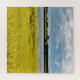 Un campo de canola amarillo vibrante florece bajo un cielo dinámico, con parches de nubes onduladas que colocan sombras en el paisaje. Al fondo, una banda de árboles de color verde oscuro separa el campo de una tranquila extensión de agua. Esta imagen fue tomada cerca de Streatham en Victoria, Australia.