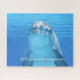 Dramática fotografía de cierre de un delfín juguetón, mirando a la cámara. Haga clic en el botón "Personalizar" para añadir su propio texto y crear su propio regalo especial único. ¿Qué tal el nombre de alguien, un cumpleaños o Navidades saludando, un lugar y una fecha? O, si lo desea, simplemente elimine el texto para tener la imagen por sí sola. ¡NO OLVIDES ELEGIR EL NÚMERO CORRECTO DE PIEZAS! Piece y silencio ©