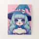 Una hechicera en tonos rosa pastel y violeta. Tiene grandes ojos azules y una mirada sombría. Gran olor a cualquiera que ame el arte de estilo flaco adorable.