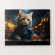 Puzzle Dressed Cat at Cafe by Night