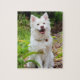 Puzzle Dulce foto de fondo verde del perro de lapp blanco