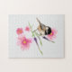 Hermoso ave de canto de garbanzos con capucha negra pintada en acuarela con flores rosadas y violetas pintadas por el artista Jennifer Steffen. El arte se imprimirá en una variedad de productos como tazas, azulejos, posters y lienzos, bolsos de té, puzzles, tarjetas de saludo, decoración casera y más. Diseño del Emporio de Jenn.