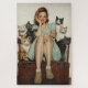 Una mirada encantadora y humorística sobre la cuerda de la "loca dama de gato", este retrato de estilo vintage muestra a una joven alegre sentada en un baúl vintage, rodeada por un adorable surtido de gatos. Vestida con un retro vestido floral y robustas botas, su divertida sonrisa y los extravagantes compañeros de gatito aportan encanto y humor a la escena, celebrando la alegría de la obsesión felina.