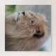 En la imagen, un león macho se para orgullosamente contra un fondo claro. Su majestuoso estilo enmarca su noble cara, exuberante fuerza y autoridad. A sus pies se encuentra una hoja verde vibrante, que simboliza la armonía entre el rey de las bestias y el mundo natural