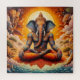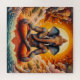 La obra representa una escena poderosa y mística que mezcla elementos de espiritualidad, mitología y naturaleza. La figura central exuda una sensación de serenidad y fortaleza, mientras que los animales circundantes añaden al aura general de poder y mística. Figura central La figura central parece ser una diosa o deidad, adornada con intrincadas joyas doradas y una expresión serena. Su cara medio sombría podría simbolizar la dualidad o la conexión entre diferentes reinos. Su suave interacción con el cachorro tigre sugiere compasión y armonía con