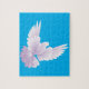 El blanco se zambulló en un cielo azul. vuelo de la paloma en el ala.