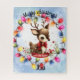 Este rompecabezas con luces multicolores y un ciervo con el nombre personalizado del niño los hará felices.