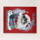 Este encantador ilustracion cuenta con un gato blanco-negro vestido con un sombrero de Santa Claus, sentado sobre un regalo turquesa con copos de nieve. El presente tiene una cinta roja. El fondo es rojo con copos de nieve blancos y azules y adornos navideños. El texto "El mejor regalo es un gato Navidad" está escrito encima del gato. Este ilustracion sería un delicioso rompecabezas para los amantes de los gatos y para los que disfrutan de la temporada festiva.