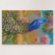 Pavo real parado en un jardín rosa rosado Resumen AI generó pavo real azul de arte rodeado de flores de colores. Arte creado con Wombo dream AI de minx267