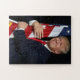 Puzzle El presidente Trump abrazando la bandera estadouni