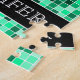 Características del este diseño del rompecabezas a rejilla-como modelo tejado de los cuadrados con los varios tonos del verde. También ofrece un nombre personalizado.