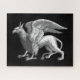 Rompecabezas en una elegante imagen gris plateado / gris de un grifo, una mítica cruz entre un águila y un león, con una sutil mirada de 3 d sobre un fondo negro