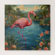Un paraíso vintage con este flamenco rosa de estilo retro, enclavado elegantemente en una tranquila laguna tropical.