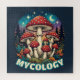 At the heart of the piece, richly textured Amanita Muscaria mushrooms nestle among lush moss, ferns, and wildflowers, framed by an intricate border of winding roots. The composition masterfully blends the cozy, romantic charm of Cottagecore with the mysterious allure of Celestial and Dark Academia aesthetics. The crescent moon and starry gradient sky create a poetic sense of wonder and solitude.