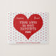 Create your own engagement or Valentine's Day fully personalized keepsake puzzle with your custom love message. This template lets you can change the 4 lines of text quote and names and add date and place. Perfect cute Valentines' romantic relationship celebration gift for fiancee, engagement, marriage, or couple's anniversary.