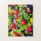 Pon a prueba tus habilidades de creación de puzzles con esta toma de una colorida y caótica ensalada y almuerzo de fruta. Rompecabezas de rompecabezas de 11 x 14 pulgadas con 252 piezas.