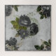 Almohadas de efemera con Rosas negros y acentos florales verdes con fondo gris.