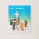 Esta es una visión moderna de la escena Nativity. Es un ilustracion que presenta a la Sagrada Familia, María, José y el Niño Jesús en un pequeño pesebre. Ángel Gabriel está ahí dos más los tres sabios que se cree que han visitado a Jesús después de su nacimiento. Encontrar también varios animales de corral y un pastor de ovejas. Los copos de nieve dan forma a un árbol de Navidad en el fondo azul claro. Esta representación de la Natividad de Jesús también se llama cuna, pesebre o guardería. Por lo general, una escena a gran escala incluye la Sagrada Familia, los ángeles, los magos, el buey y el burro, y una variedad de pastores, aldeanos, sirvientes y otros. la escena de la Natividad que ahora se recrea en las plazas e iglesias de la ciudad en todo el mundo fue concebida originalmente por San Francisco de Asís.