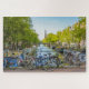 Hermoso rompecabezas fotográfico con bicicletas y un canal en Ámsterdam, Holanda. Una manera perfecta de pasar el tiempo relajándose y divertiéndose o haciendo un regalo para su familia, amigos o cualquier persona que ama.