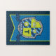 Caballeros gráficos escudan a escudo con una corona, cara de oso, estrella, y su propio nombre inicial en la cinta azul. Fun Medieval jigsaw. Personaliza con el nombre y la inicial de tu propio joven caballero. Hay otros elementos coincidentes disponibles. Diseño original de caballeros de Sarah Trett para www.mylittleeden.com en Zazzle.