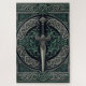 Diseño celta en tonos verdes con una espada corta y nudos celtas.