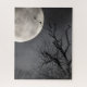 Silución de cuervos a la luz de una luna espeluznante en un rompecabezas difícil y divertido.