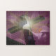 Rompecabezas de rompecabezas de 11" x 14" con una imagen compuesta de una cruz y una liga de Pascua vista a través de un velo morado. Vea la colección completa del rompecabezas de Pascua bajo la categoría HOME en la sección HOLIDAYS.