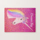 El rompecabezas del Purpurina Arcoiris Unicornio de oro rosa Sparkle Jigsaw Occupy tu mente con un hermoso diseño de unicornio de tierra de fantasía. El rompecabezas está diseñado con la cabeza de un gran unicornio blanco y tiene el pelo arcoiris y flores de bonito. El fondo es un brillo purpurina brillante rosa y dorado y la inspiradora frase "Sueño Grande" en letras de caligrafía blanca grabadas en el frente superior. Gran juego para escolares y adultos. Personalizar con un texto muy propio si lo desea.