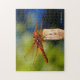 Parte del cerebro, parte del arte de ensamblar por uno mismo, este desafiante rompecabezas con temática de vida salvaje es genial para mejorar la memoria muscular. Si eso no es una sonrisa de ojo a ojo, ¡no sé qué es! Después de esquivarme en el patio trasero durante una semana, este hombre Scarlet Meadowhawk (uno de los dos hombres que se presentaron hoy y que brevemente se colgaron) finalmente decidió volver a la tierra encima de una de las apuestas de bambú. ¡Ni siquiera le importaba que le pusiera el objetivo macro prácticamente en su cara para este cierre! El pequeño Rojo me obligaba poniendo sus alas perpendiculares a su cuerpo (las libélulas normalmente se colocan con las alas apuntadas hacia delante; al adoptar la pose de la mosca de la doncella, me hacía más fácil tener una visión sin obstáculos de su cara). Los cardenales Meadowhawks son libélulas más pequeñas que los Darners de los Ojos Azules y los Hawkers Marrones, pero lo que les falta en tamaño, ellos (al menos los machos) compensan con su llamativo color rojo sólido. Basado en la fotografía original de W.H. Sim. Todos Los Derechos Reservados. Ver más en zazzle.com/walkswithnature