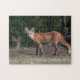 Un zorro rojo sigiloso en el borde del bosque tiene la vista puesta en un hermano.