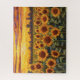 Este magnífico campo repleto de girasoles contra la puesta de sol tiene una estética rústica y una imagen digital de una obra de arte de fibra. A dos pasos se ve la textura única del tejido y el bordado. Haría un regalo maravilloso para alguien que ama los girasoles, o ¿por qué no pedirles que vendan en su tienda de regalos?