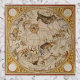 Ilustración vintage de astronomía y mapa celeste o imagen de carta estelar con un antiguo planisferio de las constelaciones del cielo nocturno del sur, incluyendo algunos signos del zodíaco, por el matemático y médico inglés Thomas Hood (1556-1620). Creado en 1590.