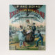 Circa 1885 - Publicidad para Ale jengibre con globo y canasta con asistentes negros. Dos mujeres beben Excelsior Ginger Ale, insinuando que el carbonato ayuda a que el globo se eleve. Imagen de dos mujeres vestidas a la moda con trajes largos y delgados y bonnets embarcándose en un paseo en globo aerostático, una se para dentro de la canasta sosteniendo un pañuelo de borde de encaje con un operador de globo con bigotes con binoculares y un monóculo, y la otra sopla jengibre de un vaso cuando empieza a subir una escalera de cuerda al avión; dos hombres afroamericanos con botellas de jengibre globo; una gran multitud observa el espectáculo desde las gradas detrás de una valla de madera blanca pintada con lemas publicitarios