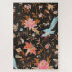 Antique fine brown woven asian fabric with exotic orange pink flowers, blue turquoise birds and bugs and butterflies of embroidered silk.
