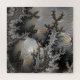 Un objeto esférico con una superficie reflectante se sitúa de manera prominente entre patrones complejos, de tipo fractal, con varios matices de gris, negro y oro. Los patrones intrincados aparecen casi como un paisaje texturizado, mientras que la esfera actúa como una lente que distorsiona y comprime los detalles circundantes.