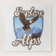 Explore los Alpes - hermoso logo de escalada inspiradora con un águila dorada.