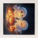 Trae la diversión de Halloween a la vida con dos fantasmas adorables y juguetones rodeando calabazas brillantes.