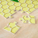 Este impresionante rompecabezas presenta una imagen gráfica de un lindo abejorro amarillo con rayas negras, ojos, antenas y piernas. Tiene alas azul y blanco bonito. La abeja está sentada en medio de un girasol amarillo dorado. La flor tiene un tallo verde y tres hojas. El mensaje "feliz día de la abeja" aparece esparcido en las tres hojas. El fondo está compuesto por un patrón de abeja amarilla.