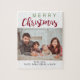 "Feliz Navidad" en rojo y verde en letra estilo caligrafía con letras a mano, con fotos de tu propia familia. Personalice esta tarjeta de foto de Navidad reemplazando la foto por la suya propia.