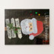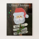 Festividades al aire libre Navidades con Jolly Santa Claus con su gorra rojo y carteles para el Polo Norte, envolvimiento de regalos y taller de Papá Noel con hojas y bayas rojas, y coloridas luces en el árbol de Navidad en el fondo. Con el texto, Feliz Navidad escrito en blanco. El rompecabezas con temática invernal de bonito es un buen regalo para cualquiera. Foto original ©TamiraZDesigns.