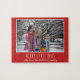Navidades de fotografía festivos de escritura roja rompecabezas de Navidad. Diseño moderno y simple con una foto en un fondo rojo - personaliza el rompecabezas con la foto de tu familia. El texto Feliz Navidad y los deseos están en tipografía de moda blanca - personalizar el texto. Haz tu propio regalo personal de Navidad para tu familia y amigos.